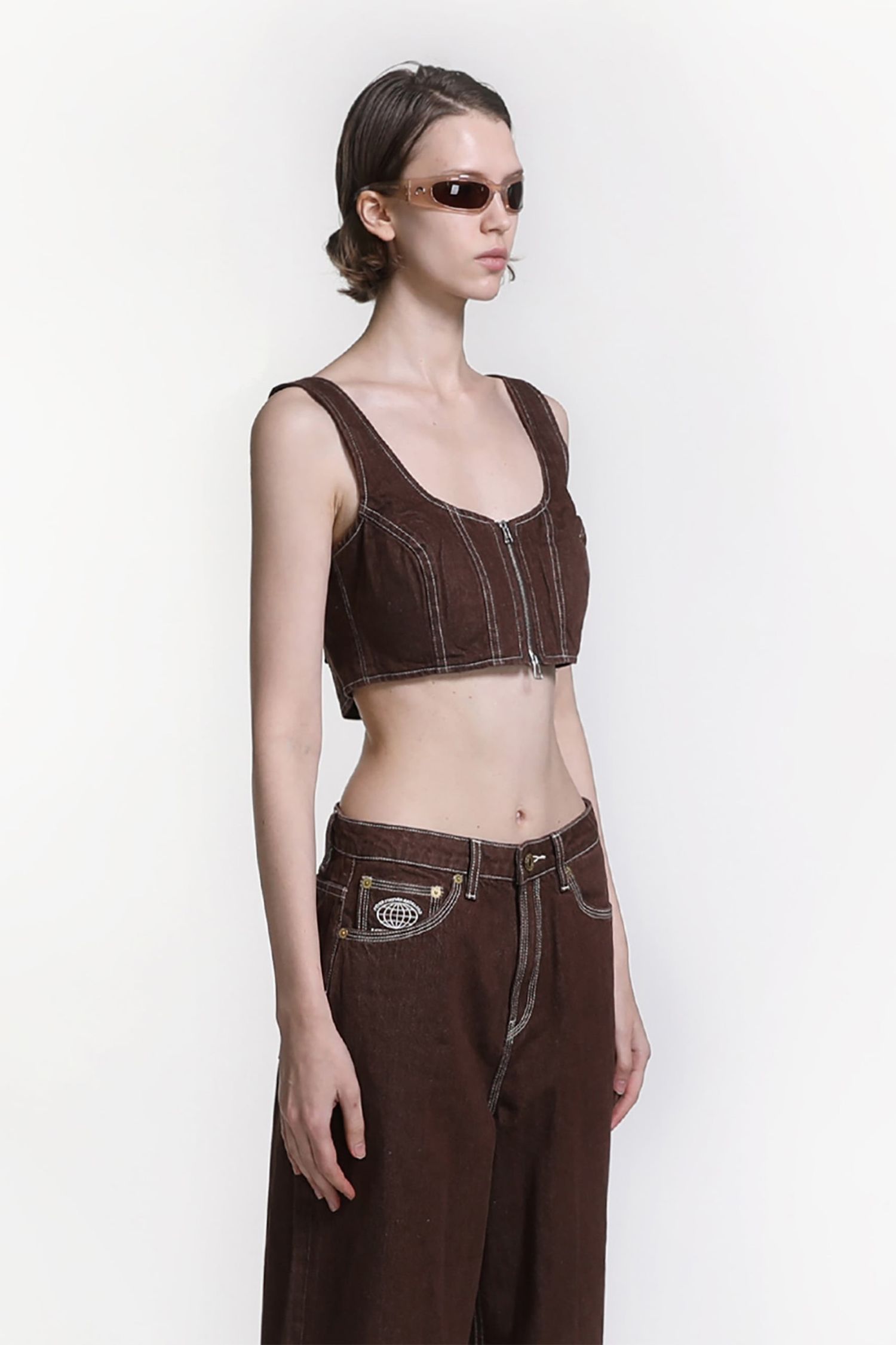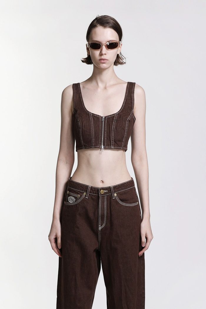FFB Color Denim Bralette - Brown