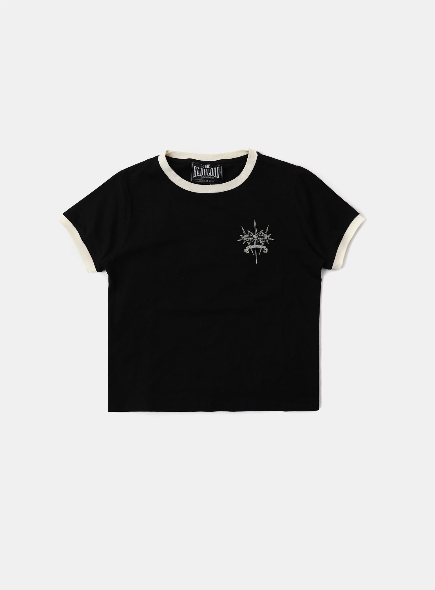 A cosmo triple patch ringer T-shirt that stands out.